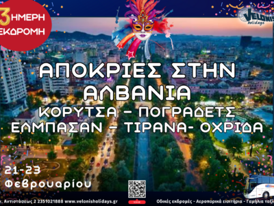 21-23 ΦΕΒΡΟΥΑΡΙΟΥΑΠΟΚΡΙΕΣ ΑΛΒΑΝΙΑ 3ΗΜΕΡΗ ΕΚΔΡΟΜΗ ΚΟΡΥΤΣΑ – ΠΟΓΡΑΔΕΤΣ ΕΛΜΠΑΣΑΝ – ΤΙΡΑΝΑ -ΟΧΡΙΔΑ 21-23 ΦΕΒΡΟΥΑΡΙΟΥ Από € Λεπτομέρειες